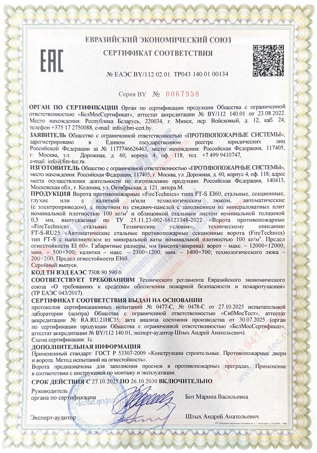 ГК Firetechnics закончила замер, производство и монтаж следующей продукции:
